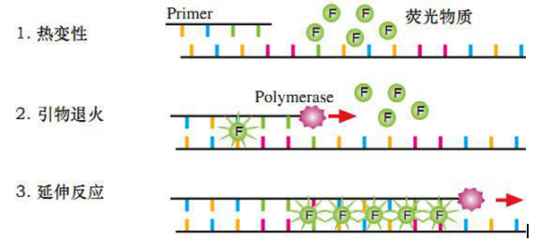 SYBR Green I染料法:該染料是專一和雙鏈DNA分子結(jié)合發(fā)光的熒光染料,每擴(kuò)增一次,染料結(jié)合一次,檢測(cè)信號(hào)增加一倍;
