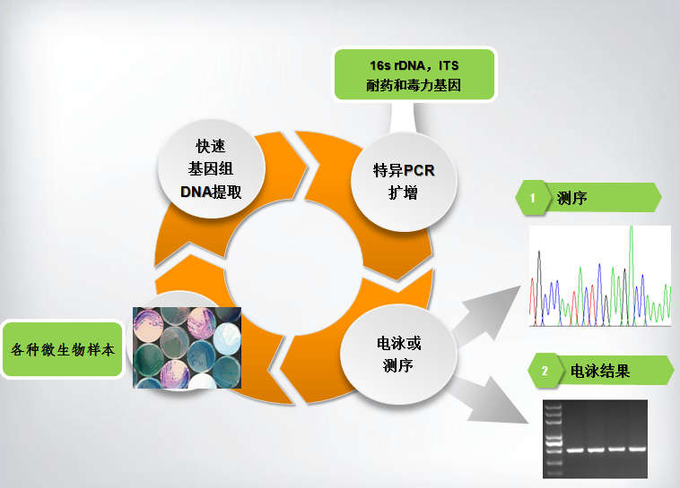通過對(duì)細(xì)菌16rDNA可變區(qū)和真菌ITS區(qū)進(jìn)行PCR擴(kuò)增,然后測序和Blast分析,從而獲取微生物種類的準(zhǔn)確鑒定;同時(shí)對(duì)多種微生物特異的毒力基因以及耐藥基因進(jìn)行PCR擴(kuò)增,進(jìn)行致病菌株以及耐藥菌株的精確篩選。