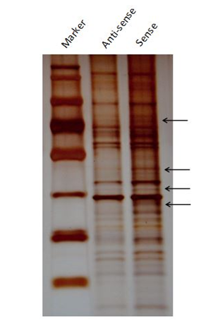 牛某lncRNA基因Sense和Anti-Sense下拉蛋白的PAGE銀染結果